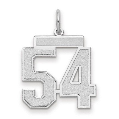 Celebrate your favorite sports player, lucky number or milestone date in your life with a prominent rhodium-plated sterling silver charm. Each satin and diamond cut number is approximately 12mm (7/16 Inch) in length, which is finished with a 3mm top bar and classic jump ring that will accommodate up to a 3mm chain. Made in the U.S.A. Chain not included. Additional features include: rhodium-plated sterling silver design; features a flat design with a satin and diamond-cut finish; approximately length 15mm; average weight is 0.88 grams.