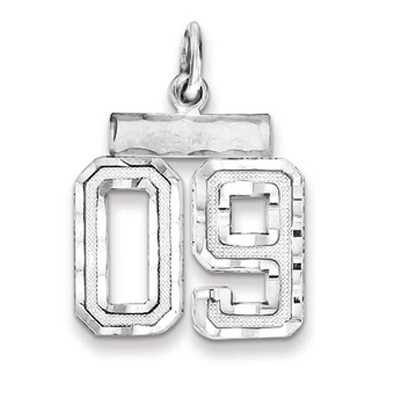 Celebrate your favorite sports player, lucky number or milestone date in your life with a prominent rhodium-plated sterling silver charm. Each satin and diamond cut number is approximately 12mm (7/16 Inch) in length, which is finished with a 3mm top bar and classic jump ring that will accommodate up to a 3mm chain. Made in the U.S.A. Chain not included. Additional features include: rhodium-plated sterling silver design; features a flat design with a satin and diamond-cut finish; approximately length 15mm; average weight is 1.05 grams.