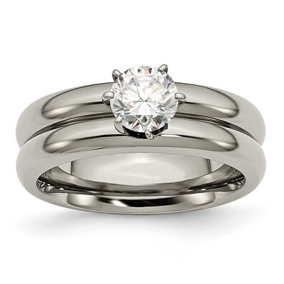 The brushed and grooved stripes on this polished, titanium band combine a trendy look with a contemporary design. This flat, standard fit band measures 6mm wide and is equally suited for both men and women. Available in whole and half sizes 6-13. Additional features include: crafted from titanium, brushed and polished finish; 6mm, standard fit, unisex band; available in whole and half sizes 6-13; hypoallergenic, perfect for those with sensitive skin.
