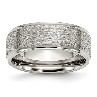 • Unique Features - The polished, grooved stripe on this brushed, titanium band combines a trendy look with a contemporary design. This domed, comfort fit band measures 6mm wide and is equally suited for either men or women. Available in whole and half sizes 6-13.