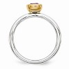 • Unique Features - Featured atop a 2.5mm tarnish resistant rhodium-plated sterling silver band is a 5mm 0.-carat cushion-cut created ruby bezel set in a yellow gold-tone plated low profile mounting. Guaranteed to fit together perfectly with all of the mix and match Stackable Expressions rings.