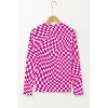 Checkered Pattern Mesh Mock Neck Long Sleeve Top