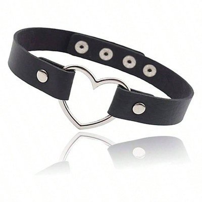 Black Choker with Heart Padlock and Key, Women's PU Leather Collar.