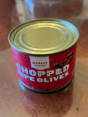 Create tasty tapenades and other recipes with this can of Chopped Ripe Black Olives from market pantry™. These ready-to-eat delicious ripe black olives are pitted and chopped for convenience, and are free from the eight major types of allergens. They can be blended into a savory paste to spread over bread or crackers, or simply added to salads, pizzas, pastas and other dishes.
