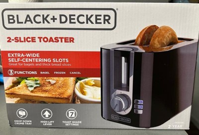 BLACK+DECKER 2-Slice Toaster, 7 Toast Shades, Removable Crumb Tray, Illuminated Bagel, Frozen and Cancel Functions