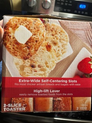 - Extra wide self-centering slots – fits most thicker artisan breads and bagels with ease. 2-Slice Capacity.