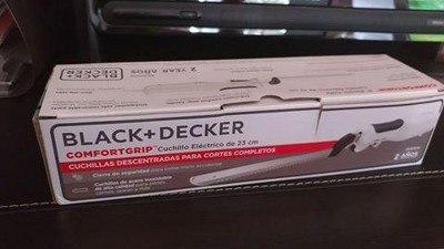 BLACK+DECKER 9 inch Electric Carving Knife; Comfort Grip Handle & Safety Lock Button; Stainless Steel Blades and Dishwasher Safe Parts; White