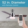 This BLACK+DECKER 52 inch ceiling fan with light will circulate air like never before. When it comes to quality ceiling fans, our attic fan (52" x 52" x 17.5") delivers powerful cooling thanks to impressive 3 reversible plywood blades in Mahogany and Natural Wood Finish. Choose your fan setting: HIGH (4800 CFM), MED (3360 CFM), and LOW (1920 CFM). Control your house fan with a convenient fan remote. Talk about ease! Our ceiling fan with lights remote control (15.4 lbs.) comes in a modern nickel finish, which is cool and contemporary, sure to delight many aesthetics. This brush nickel ceiling fan cools rooms up to 270 square feet quickly and efficiently. What's better than a 52 inch ceiling fan with light and remote for a hot summer day This brushed nickel ceiling fan is easy to operate, stunning to look at, and powerful in its ability to cool a room. In the world of lighting & ceiling fans, this BLACK+DECKER 52 ceiling fan with light and remote control ceiling fan ranks among some of the best. Enjoy a frosty white light that can set the ambiance of a room with 2 13W E26 bulbs sold separately. Stay comfortable and breezy any time of year with BLACK+DECKER's brushed nickel ceiling fan with light and ceiling fan remote!
