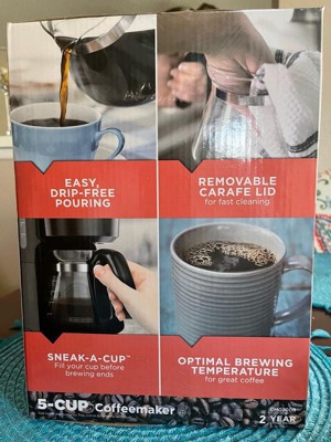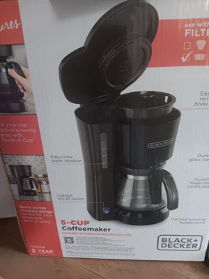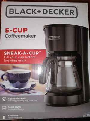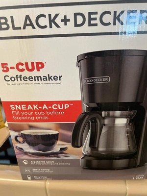 Thank you for offering your feedback regarding your Black+Decker 5-Cup Coffee Maker. I’m sorry to hear of the difficulties you're having with your coffee maker's sneak a cup feature. I have already taken action by documenting your complaint, and I want to fully resolve this issue to your satisfaction. Your coffee maker has a two year warranty. Please reply to the email I’ve sent you from youropinionmatters@spectrumbrands.com so I can address your concerns.