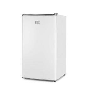 The BLACK+DECKER Energy Star mini fridge has a modern square design that fits - with style - into any indoor living space. Adding convenience to any room for real-life practicality, it is perfectly compact without compromising interior storage space. Youll be amazed by how much it fits. The free-standing, flat back unit fits easily under counters and desks, or in room corners. The adjustable temperature control, removable glass shelf, reversible door, and quiet operation make daily life a lot easier with one small appliance! Fittingly referred to in the industry as the cube with its relatively square shape, this BLACK+DECKER Energy Star certified compact fridge offers a smallish footprint that make it just as easy to be placed on a counter or table as on the floor. With a little organizational skill, youll be amazed how much you can fit inside.