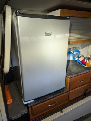 The BLACK+DECKER Energy Star mini fridge has a modern square design that fits - with style - into any indoor living space. Adding convenience to any room for real-life practicality, it is perfectly compact without compromising interior storage space. Youll be amazed by how much it fits. The free-standing, flat back unit fits easily under counters and desks, or in room corners. The adjustable temperature control, removable glass shelf, reversible door, and quiet operation make daily life a lot easier with one small appliance! Fittingly referred to in the industry as the cube with its relatively square shape, this BLACK+DECKER Energy Star certified compact fridge offers a smallish footprint that make it just as easy to be placed on a counter or table as on the floor. With a little organizational skill, youll be amazed how much you can fit inside.