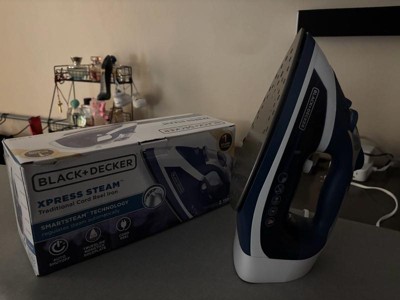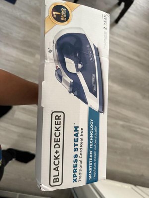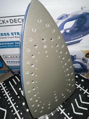 The BLACK + DECKER Xpress Steam Cord Reel Iron takes the stress out of garment care. SmartSteam Technology gives you total control in one dial, with temperature and steam settings for all types of fabrics. Vertical steam lets you blast away wrinkles from clothes on the hanger or from drapes. Plus, the spring-loaded cord reel prevents tangling and takes the hassle out of storage.