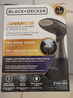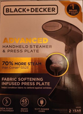 [This review was collected as part of a promotion.] I recently got me the Black and Decker Advanced handheld steamer and iron and I absolutely love it. It has powerful steam that refreshes your fabrics it also has 3 different attachments one you can put a sent of your choice and the fragrance stays on your fabric it also does upholstery fabrics and has a lint remover. I would definitely recommend this