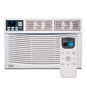 The BLACK+DECKER 10,000 BTU Window Air Conditioner offers a cooling solution designed for optimum comfort and efficiency. This window mounted AC is a perfect addition to your home, offering a powerful cooling capacity that can efficiently cool rooms up to 450 square feet. With a 10.9 CEER rating, this air conditioner is engineered for energy efficiency and sustainability, utilizing R-32 refrigerant to minimize environmental impact. The Black and Decker window air conditioner boasts an array of features tailored to enhance user convenience and comfort. Equipped with electronic controls and a digital display along with a full function remote control, adjusting your settings is straightforward and precise. This window AC unit is designed with versatility in mind, featuring three cooling and three fan speeds that can be adjusted to suit your preferences. The adjustable thermostat control provides a temperature range from 61 to 88 degrees Fahrenheit, allowing you to customize your environment for ultimate comfort. For added convenience, the unit includes a sleep mode and energy saver feature, promoting efficient operation and reducing energy consumption during non-peak hours. Installation is made simple with the included hardware and installation kit, accommodating windows that measure 23 to 36 inches in width and as low as 14.5 inches in height. The side accordion panels ensure a snug fit, minimizing air leaks and maximizing efficiency. The removable and washable filter simplifies maintenance, ensuring your air conditioner window unit remains in optimal working condition. Additional features such as the timer/clock function and auto restart enhance the functionality of this room air conditioner. The auto cooling/fan mode provides seamless operation, adapting to your cooling needs without manual intervention. In fan-only mode, you can enjoy a gentle breeze without the cooling effect. 115V, 60Hz, 9.5A. UL listed.