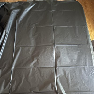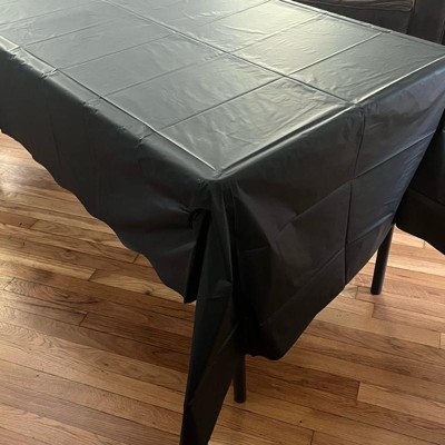 [This review was collected as part of a promotion.] Plastic table that fits the bill for the price. Needed a tablecloth for an event for my kids and I wanted one that was plastic because toddlers, and this one kept our table clean and the price was right so I could just throw it out after we were done. Thin, but as to be expected, and it wasn’t see through (as I r thought the black might be). Would work as a backdrop in a pinch, and I may buy another to let my kids try to draw on it like a chalkboard next time I received an incentive to write this review.