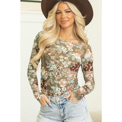 - On-trend floral mesh sheer long sleeve top adds feminine edge and texture to any wardrobe rotation Provides versatile styling for casual days, travel, and relaxed weekends.