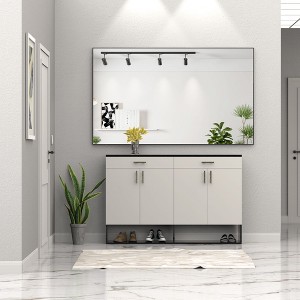 Discover versatility and elegance with our oversized 60x43 inch mirror, featuring a unique removable tray design for customized placement. Crafted with a high-definition silver mirror and durable aluminum frame, it offers expansive, crystal-clear reflections perfect for bathrooms, bedrooms, living rooms, and makeup studios. Its flexible mounting options allow for use as both a bath mirror and a full-length floor mirror. Each mirror undergoes strict quality testing and is packaged with shockproof materials and a wooden bar to ensure it arrives in pristine condition, ready to be the focal point of any space.