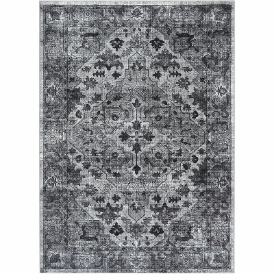 Stain Resistant Non-Slip Machine Washable Area Rug with Distressed Medallion Design for High-Traffic Homes