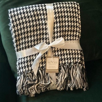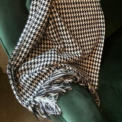 Black Houndstooth Throw (50"X60"): Saro Lifestyle, Fringed Detail, Machine Washable, Polyester & Acrylic