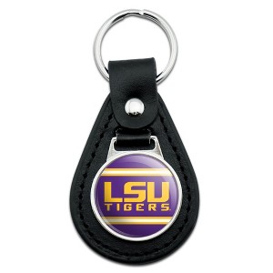 Black Leather LSU Wordmark with Jersey Stripes Keychain