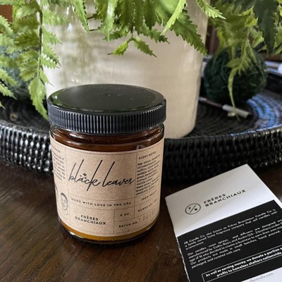 4oz Black Leaves Candle - Freres Branchiaux: Autumn Essence, Saffron & Cedarwood Scent, Soy Wax Blend, 20hr Burn Time