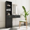 Two enclosed drawers and a large cabinet add storage space for a variety of items and remove clutter from the desk Table top with 3 round holes for hair dryer and other items Overall simple atmosphere, can be placed in the bedroom, toilet and other places, can also be used as a barber shop