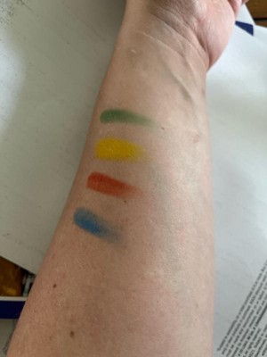 [This review was collected as part of a promotion.] I like black raindance products. This color palette is great quality. It's compact in size but not small. The quality is great and doesn't feel sticky or greasy. The consistency is not too thick. It has bright colors. It has buildable coverage. It does rub off but you can use a setting power. Didn't irritate my skin. I like that you can mix the colors I showed in one of the pictures.