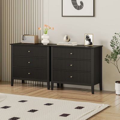 Black Rattan Nightstand, Black Nightstand with 3 Natural Rattan Drawers, Boho Mid Century Modern Bedside Table, Stylish End Table, and Functional Si