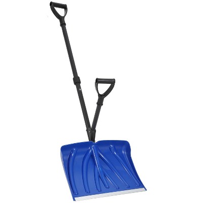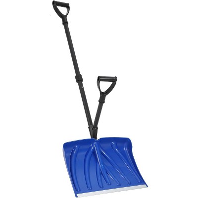 Black&Red 29"×20" Heavy Duty Wheeled Snow Shovel, Wide Metal Blade Pusher with Adjustable Ergonomic Handle for Driveway, Sidewalk & Pavement