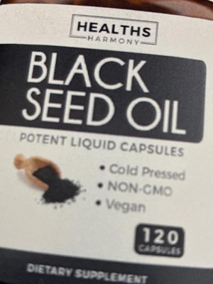 Black Seed Oil Capsules, Hair, Skin & Metabolism Support, Supports Weight Loss, Health's Harmony, 60ct