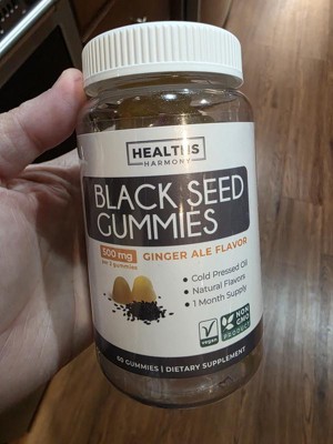 Black Seed Oil Gummies, Natural Ginger Ale Flavor, Pure Black Cumin Seed Oil for Healthy Skin, Hair & Nails, Health's Harmony, 60ct