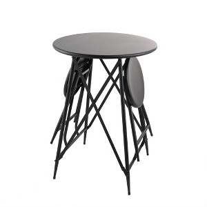 - Blending a striking black hue with an intriguing industrial design, this side table and seating set offers multiple ways to enhance your home decor.