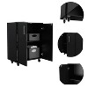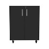 This two-door cabinet features a superior top measuring, providing ample surface space for various uses. Equipped with a padlock and key for secure storage and metal hardware for durability, it combines functionality with a polished, reliable design.