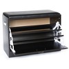 Black Wooden Fold-out Shoe Organizer - Shoe Storage Bench with Leather Cushion