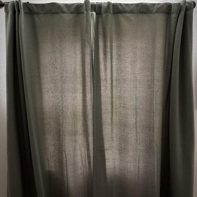 I love these curtains! They look very nice for the price and have several ways you can hang them. They are a thick fabric with a white backing. I don’t think they’re actually blackout but I bought them more for aesthetics than function as we have blinds as well. I just wish there were even more color options and tones!!