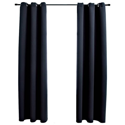 Blackout Curtains with Rings 2 pcs Black 37"x95" Fabric