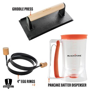 The breakfast kit offers a variety of useful tools for making delicious meals, including a pancake batter dispenser, egg rings, and a bacon press. While many guests appreciate the convenience and fun of using these accessories, there are concerns about the durability of the pancake dispenser, which has received multiple reports of breaking after minimal use. Overall, the kit is seen as a great addition for breakfast enthusiasts, especially for those who enjoy cooking outdoors.