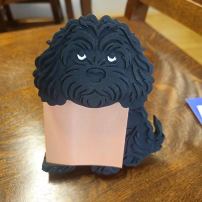 The note holder is functional and adorable! Such a cute addition to a desk for a dog lover. It looks so much like my own dog. I added a bow, lol! I’m glad I purchased 2, one for the office, and one for home.