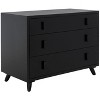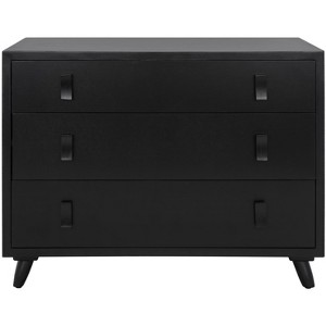 Unveil a touch of modern elegance in your living space with the Blaize 3 Drawer Chest in black. A striking piece of furniture, this chest seamlessly combines wood and metal to offer a sleek and functional storage solution. The minimalist design ensures it fits effortlessly into any decor, providing a refined touch while meeting all your organizational needs. Each drawer glides smoothly, allowing easy access to your belongings. The chest's bold black finish adds a contemporary flair, making it a standout piece in any room. Whether placed in a bedroom or hallway, the Blaize 3 Drawer Chest offers practicality and style in one stunning package. Make this distinctive chest the focal point of your decor and transform your space with sophistication and utility.