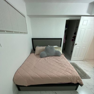 Absolutely love my new modern bedframe ! Took me about an hour and 20 mins by myself to assemble (pretty straight forward). The only thing I would say is the wood to hold the mattress was uneven & tricky to drill the nails but made it work & made them even. Also, might want to note that you need a power drill! It’ll be my first night sleeping on it, woot woot !
