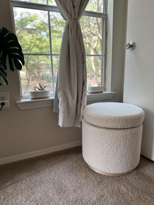 [This review was collected as part of a promotion.] This Sherpa Storage Round Ottoman is so pretty and so perfect. The size is great. Fits perfectly in my room. The color is pretty, it’s not white, is kinda a light beige, and fits with everything. The material is really good and has a great quality. I recommend it for sure.