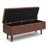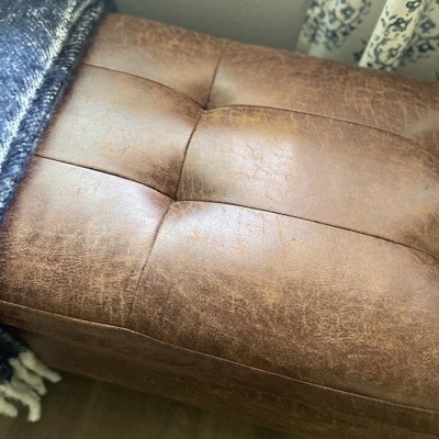 - Upholstered with a durable Distressed Saddle Brown Vegan Faux Leather