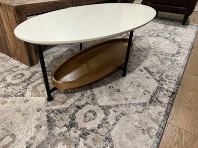 [This review was collected as part of a promotion.] The Madison Park Beaumont Coffee Table is stunning and great quality. The Natural color base is beautiful. The description states white but it’s more of an off white cream color. I love the 2-Tier design of this Oval Coffee Table, it adds a nice design and partiality with extra space. Ideal for smaller spaces like apartments. The beveled edges goes beautifully with a natural wood-colored lower shelf and black contrasting metal legs. The style is contemporary yet elegant. I love that the wood base allows for additional space to keep items organized especially with its raised edge. Importantly, easy to assemble.