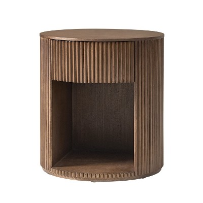 Blaze Triangular Wood Side Table Light Brown: Mid-Century Modern, Elm Finish, Cross Base