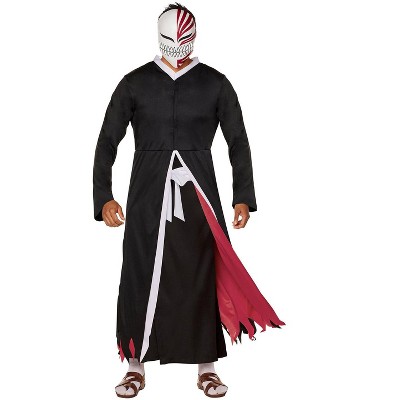 Let your child transform into their favorite anime hero with the Ichigo Child Costume from Bleach. This costume is designed to bring the powerful and iconic character Ichigo Kurosaki to life. Ideal for Halloween, cosplay events, or anime conventions, this costume ensures your child stands out with authenticity and style. The costume includes a long, black robe with white trim, mimicking the traditional Shinigami (Soul Reaper) attire that Ichigo wears in the anime. A white belt is included to tie around the waist, keeping the robe in place while enhancing the overall look. The standout feature is the detailed mask that replicates Ichigo's Hollow form. It�s white with distinctive red markings and a fierce grinning mouth, adding an extra layer of authenticity to the costume. Give your child the ultimate anime experience with the Ichigo Child Costume from Bleach. Order now and watch your young fan step into the world of Soul Reapers with excitement and flair!