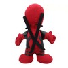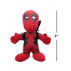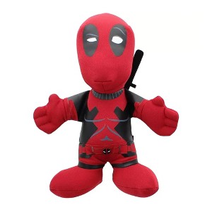 - Huggable plush doll features Deadpool in his classic red costume and armed with two swords.