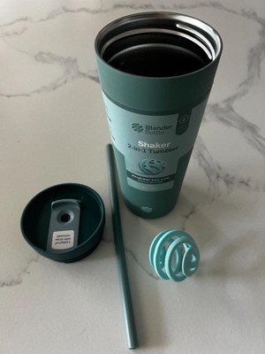 BlenderBottle 24oz Stainless Steel Strada Straw Tumbler, Sea Glass color is a sturdy water bottle coming with a cute blender ball. The inside of the bottle has measuring scales, so it’s easy to combine each ingredient. The blender ball works just fine. All parts, including the blender ball, can be washed in a dish washer. The bottle mouth is big enough to reach to the bottom by hand and wash thoroughly with a sponge which I like. Stainless steel can hold the drink temperature cold for long time!