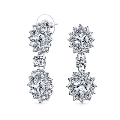 Bling Jewelry Fashion Blue CZ Halo Teardrop Drop Earrings Prom Royal Blue Cubic Zirconia Rhodium Plated Brass Color - Blue Sept