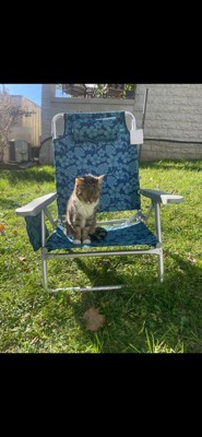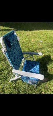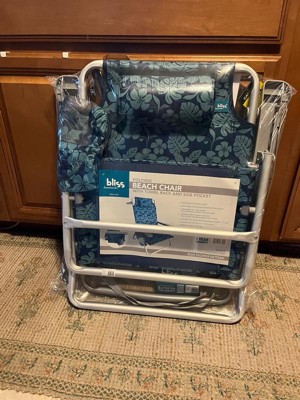 Bliss Hammocks Folding Beach Chair, Adjustable Recliner, Outdoor Backpack Seat with 24" Towel Rack and Cup Holder, 275 lb Capacity, Blue Flower