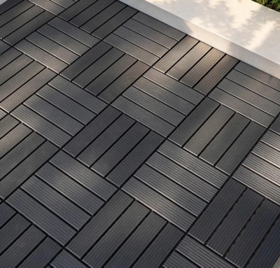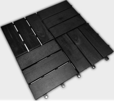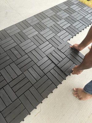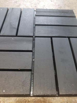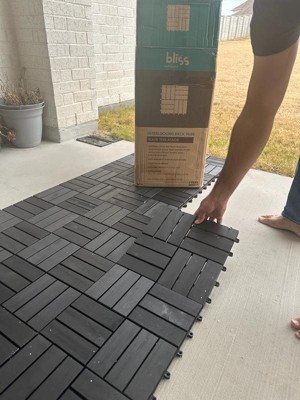 Bliss Outdoors Hardwood 12-Slat Interlock Wood Deck Tiles, Aged Black, Set of 30